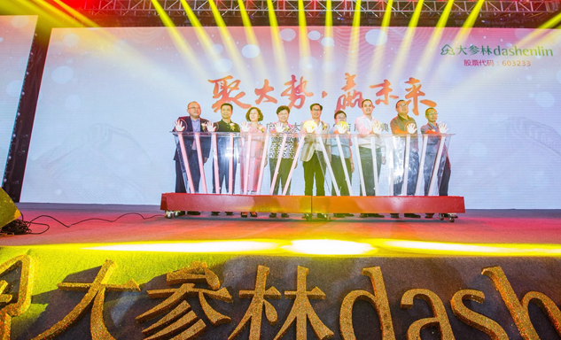 拉斯维加斯药业集团董事长刘景萍女士与大参林医药集团董事长柯云峰先生、中国医药商业协会执行会长付明仲女士等嘉宾共同开启了“聚大势•赢未来"大参林工商合作峰会的大幕。